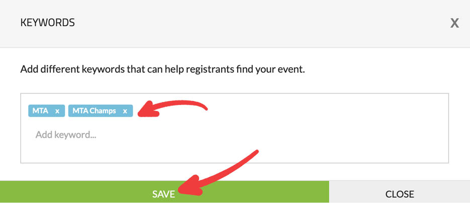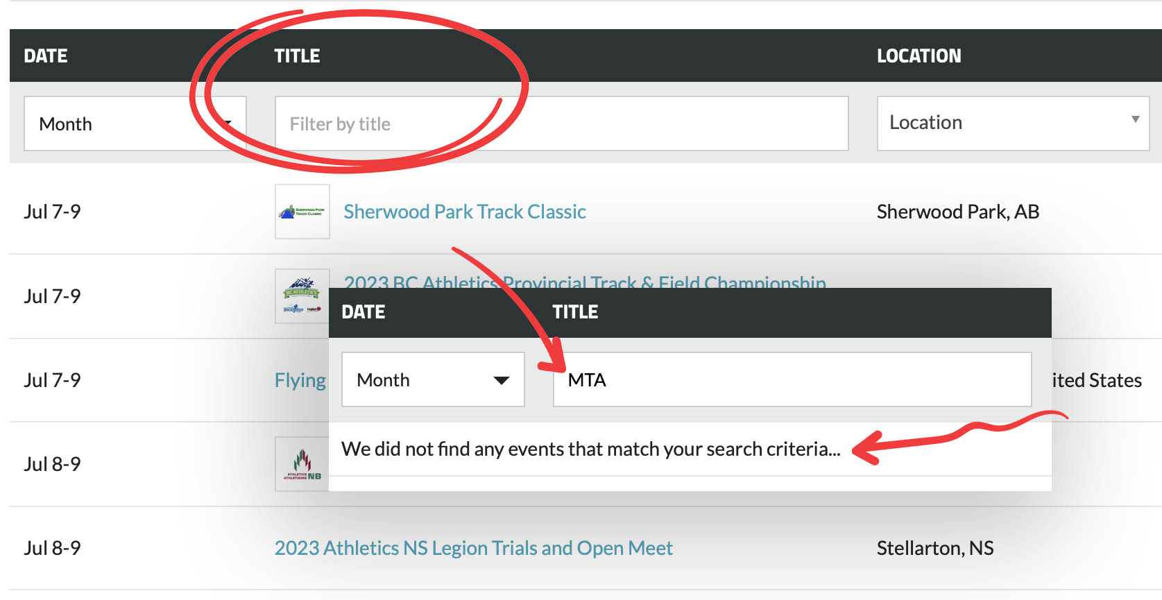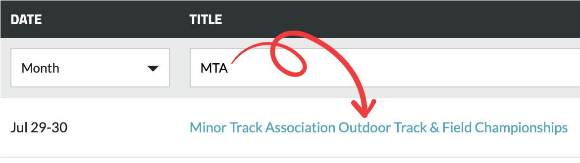 When registrants browse the Trackie.com calendar, they encounter a lot of different events. To assist their search, they often utilize the filtering options available. This is where the "Keywords" feature comes in handy. By default, the filtering options search for partial or exact matches based on your event title and location. However, incorporating relevant keywords can broaden the scope of search terms that lead to your event. For example, if your event is titled "Minor Track Association Outdoor Track & Field Championships", consider adding keywords like "MTA", "MTA Champs" or any other term you believe potential registrants might search for to try and find your event. Additionally, incorporating common typos or alternative phrases can further improve discoverability.