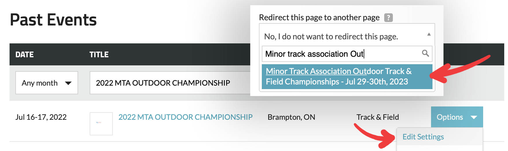 Most events occur annually. Implementing page redirects from your past year(s) helps ensure registrants find your current year's registration form. We provide the functionality to redirect those old pages to the current year's event page. This prevents potential participants from landing on outdated pages when conducting Google searches, etc. By setting up redirects, individuals who inadvertently stumble upon previous event pages are automatically directed to your current edition.