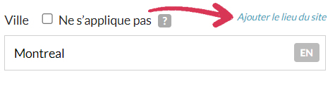 - Étape 3 : À la droite de "Ville", cliquez sur "Ajouter le lieu du site" et ajoutez les informations correspondantes à votre site.