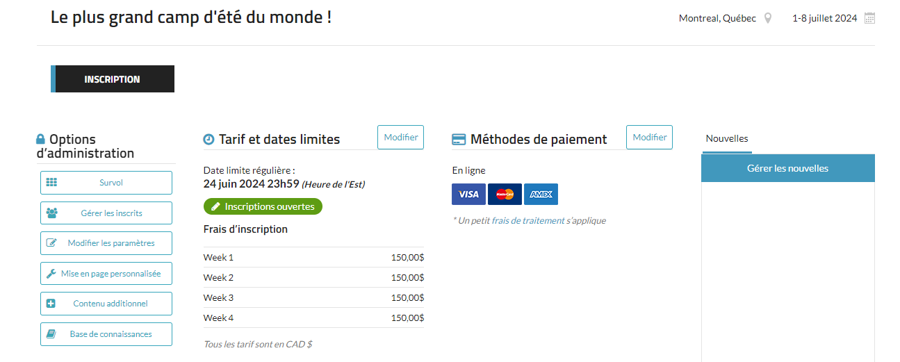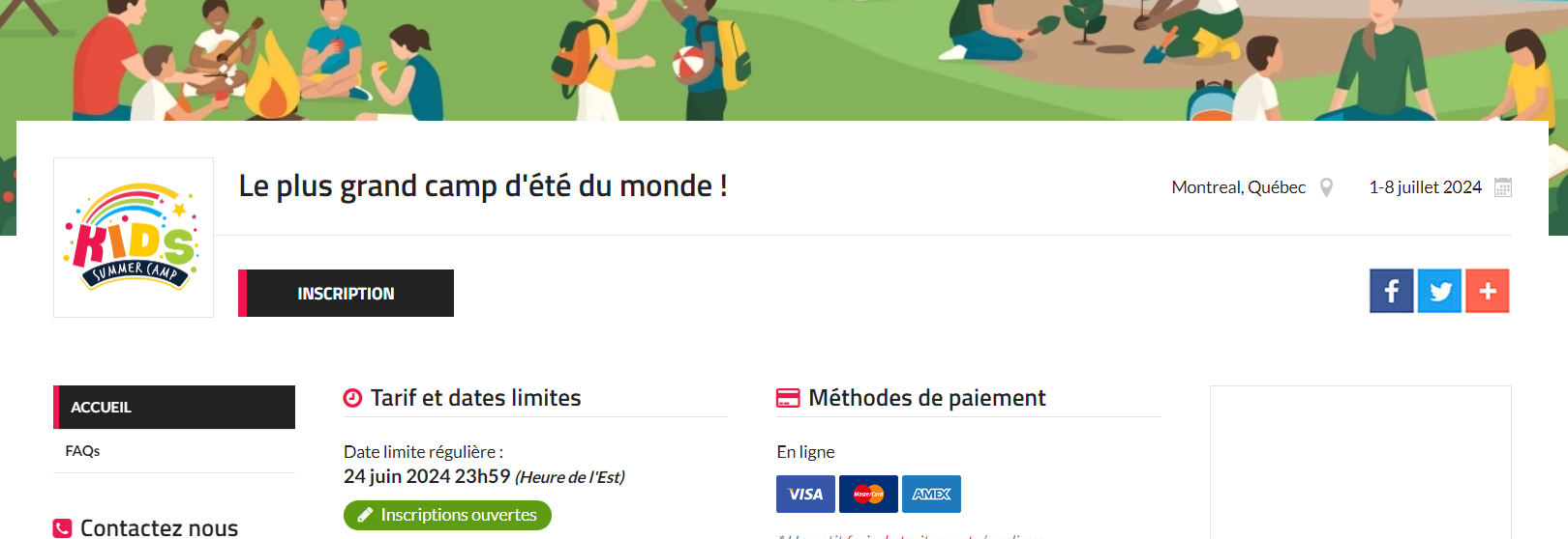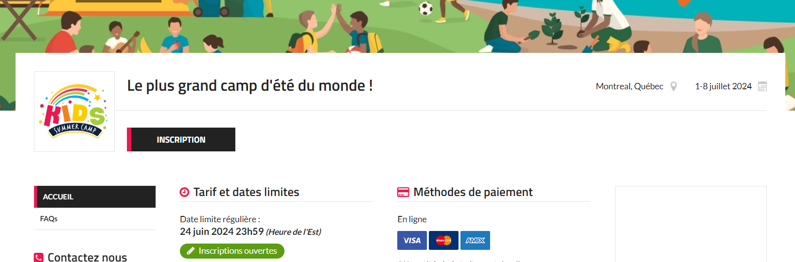 Suivez-nous alors que nous vous guidons à travers chaque étape du processus de création d'une page web. En recréant la page web "Le plus grand camp d'été du monde !", vous apprendrez à personnaliser la mise en page de votre page web, à créer une section FAQ, à afficher l'emplacement de votre lieu et bien plus encore.