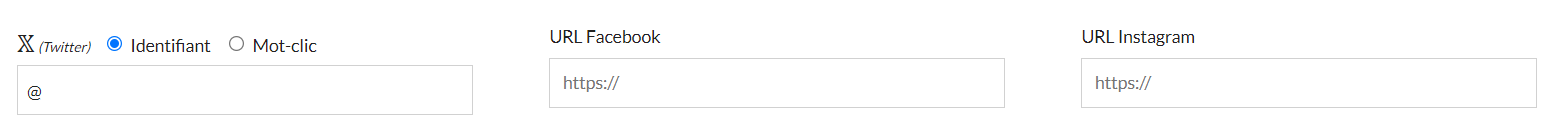 - Étape 1 : Sous "01. Généraux", ajoutez votre pseudo X (Twitter), un lien vers votre page Facebook et un lien vers votre page Instagram.