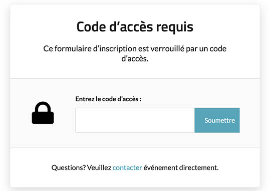 La mise en place d’un code d’accès constitue une approche simple et efficace du contrôle des inscriptions. Avec cette méthode, seules les personnes possédant le code correct peuvent accéder au formulaire d’inscription. Cette technique est avantageuse, car elle vous permet de partager facilement le code avec les personnes sélectionnées que vous souhaitez inscrire. Toutefois, il est important de noter que cette méthode n’offre pas le niveau de sécurité le plus élevé, car toute personne possédant le code peut facilement le partager avec d’autres.