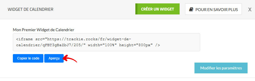 Cliquez sur le bouton vert « WIDGET DE CALENDRIER » en haut de la page.