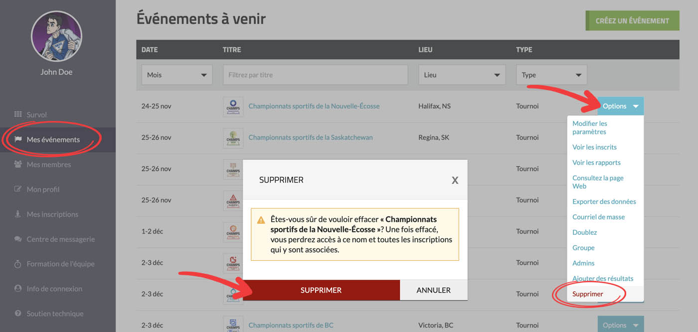 1. Allez dans la section « Mes événements » ou « Mes membres » du site.