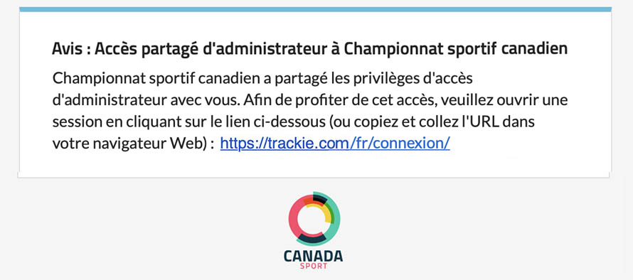 Dans l’ajout d’un(e) administrateur(trice), celui/celle-ci recevra une notification par courriel l’informant de l’accès qui lui a été accordé.