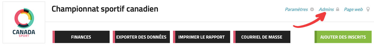 Naviguez jusqu’à la section Voir les inscrits et cliquez sur le lien « Admins » en haut de la page.
