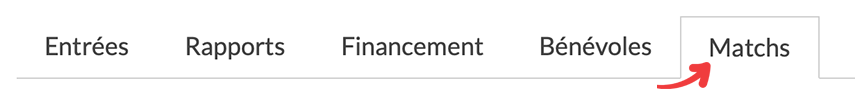 Pour accéder et gérer les matchs que vous avez créés, il vous suffit de cliquer sur l’option « Matchs ».