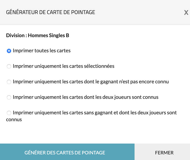 - Chargez les matchs pour lesquels vous souhaitez générer des cartes de pointage.
