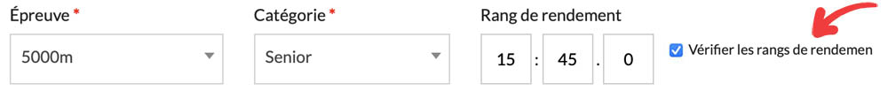 Si vous souhaitez activer la validation des performances pour inclure les classements extérieurs d’Athlétisme Canada. |