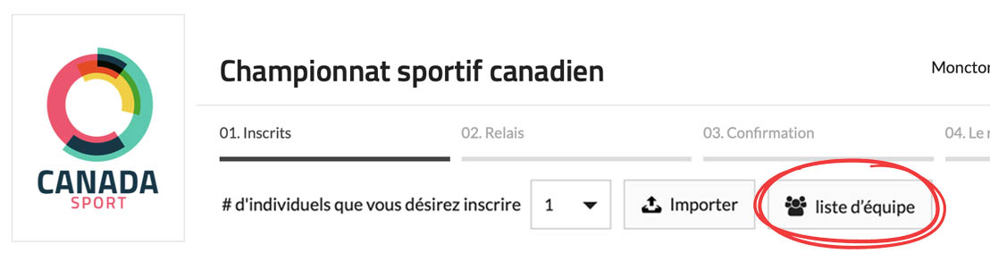 Importer à partir d’une inscription précédente : Si vous vous êtes déjà inscrit(e) à d’autres événements sur le système, nous pouvons importer vos inscriptions précédentes dans votre liste d’équipe.