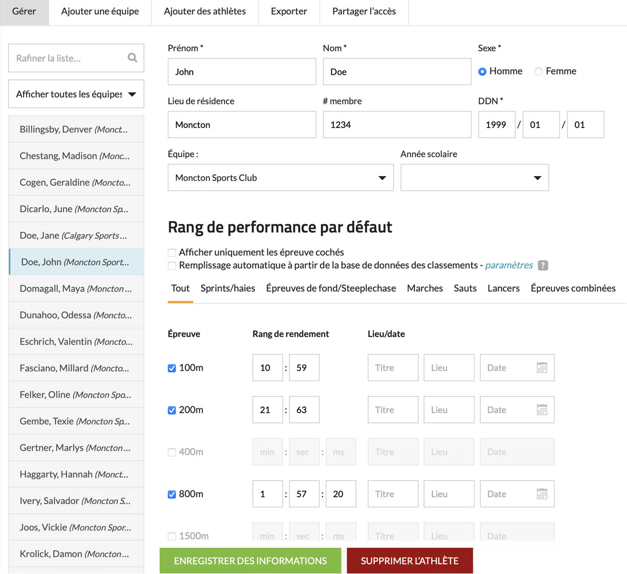 Ajouter un(e) athlète : Saisir manuellement les données d’une personne.