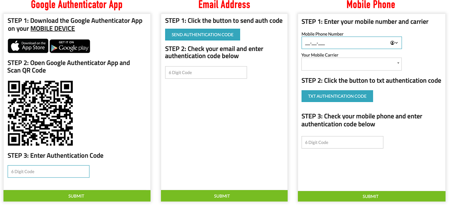 - Click "SUBMIT" to confirm and complete the 2FA setup.