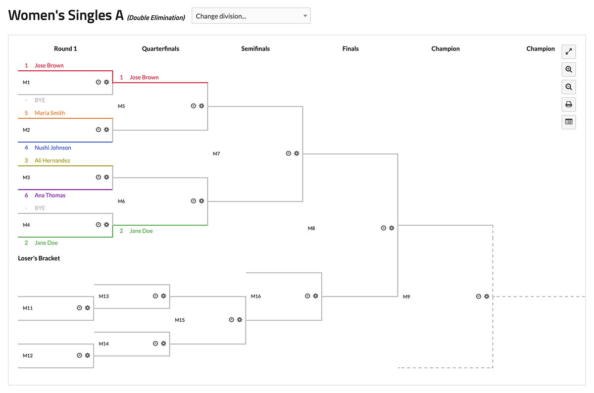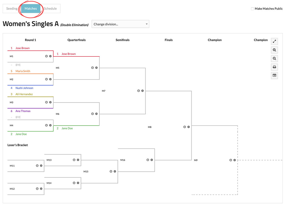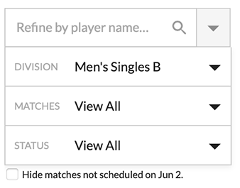 Allows you to change the division to view matches set up specifically for that division.