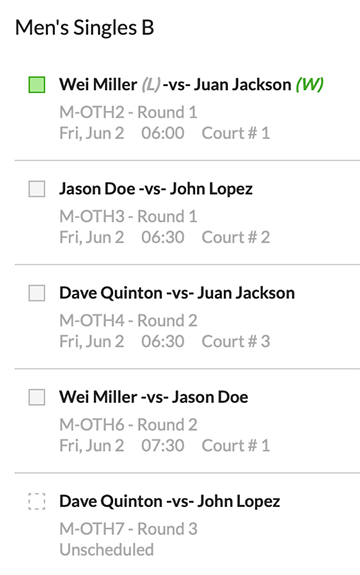 Our platform allows you to create and manage matches, making it convenient for sports like Pickleball, Racquetball, Wrestling and more. We offer diverse match creation options in the following formats: