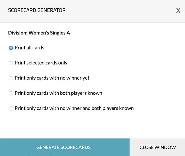 4. Select the desired option, and then click on the "GENERATE SCORECARDS" button. A PDF will be generated, which you can then download or print as needed.