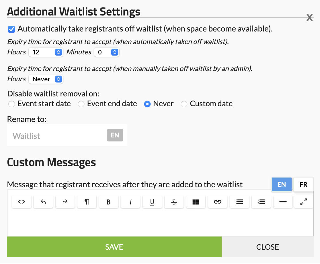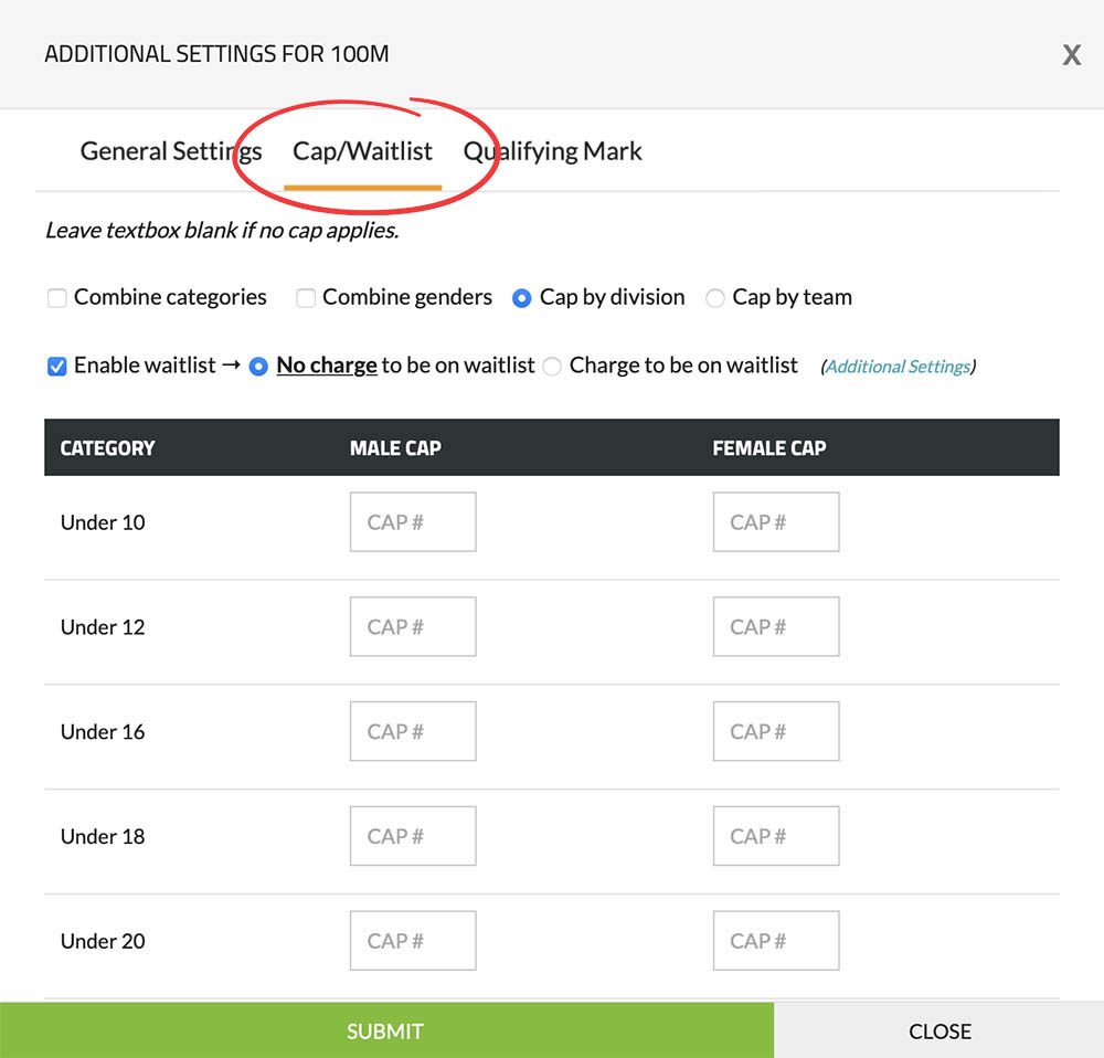 Below is what the interface to manage your limits and waitlists looks like (note: In case you clicked on the "gear" icon located to the right of a particular division, please make sure to switch to the "Cap/Waitlist" tab).